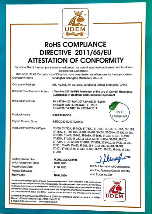 Certified by CE, ISO 9001/14001, FDA, and other international machinery standards.