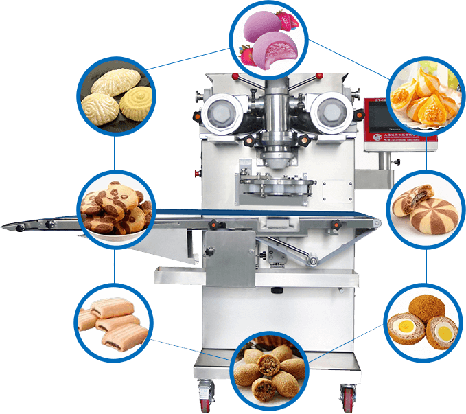 Our main products include automatic encrusting machines, cake and cookie machines, shumai machines, steamed bun and dumpling production lines, spring roll and baking machines, and automatic food packing machines.